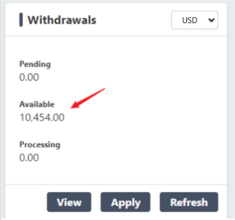 6. The commission will now show as “Available” and you are free to withdraw your commission.